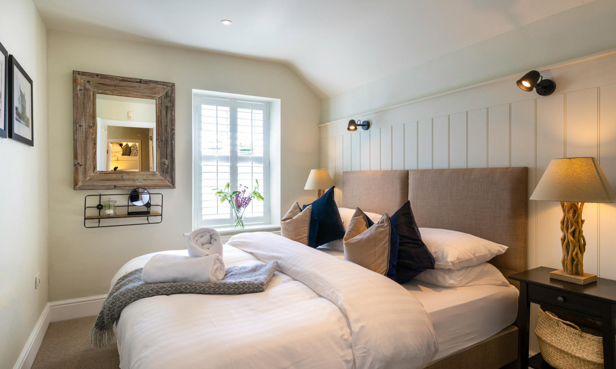 The four bedrooms are all set on the ground floor, making the home wonderfully practical for families or groups. There are two generous super-king bedrooms, one with an ensuite, plus two bright and airy twin rooms, one of which also has its own ensuite. A chic family bathroom completes the level. Each room has been finished with a contemporary palette and plush furnishings, ensuring that everyone has their own calm and comfortable corner to retreat to.