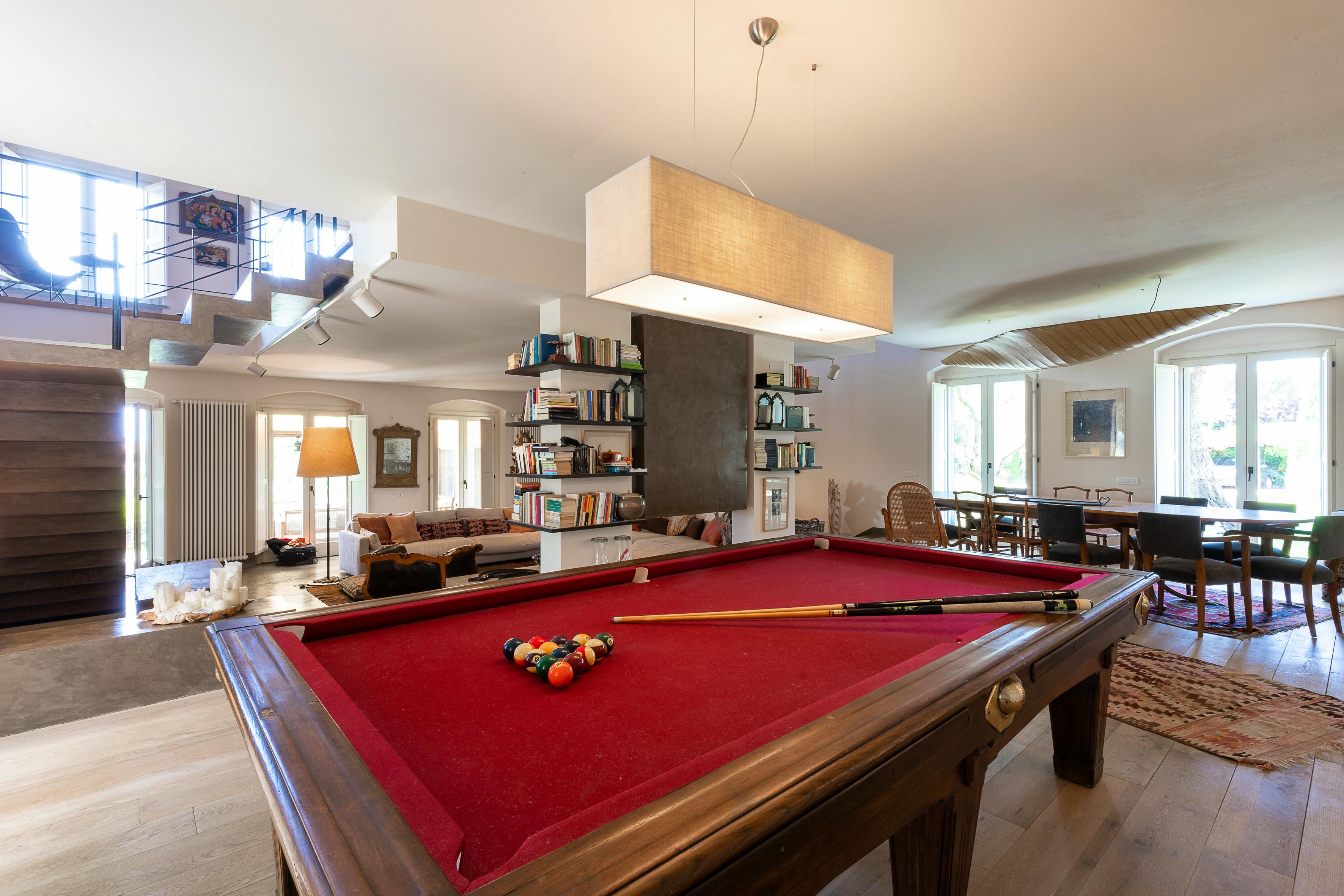 The villa sleeps nine guests in four double bedrooms that are all equipped with an LED TV. Elsewhere, there is a smart TV with a DVD player and an additional single bedroom. A small library with English and Italian books along with some games will guarantee hours of fun with your friends and family.