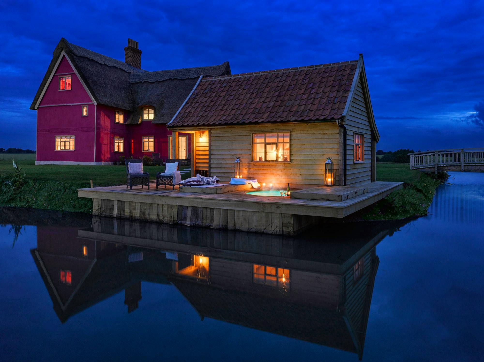 Each cottage also has two sophisticated bedrooms, including one ground floor master suite and a first floor double/twin. Both of the bedrooms have their own deluxe en-suite bathrooms boasting super-soft towels and statement fittings. Sink-in mattresses provide the ultimate in comfort and are topped with patterned throws and handcrafted, woolen cushions. Outside, the cottages have their own private decks that have a steaming hot tub and rejuvenating sauna. Enjoy a morning coffee beside the misty, mountain shadows or a romantic meal beneath star-studded visions. The ever-changing seasons capture magical backdrops brimming with snow-clad mountains and flourishing peaks.