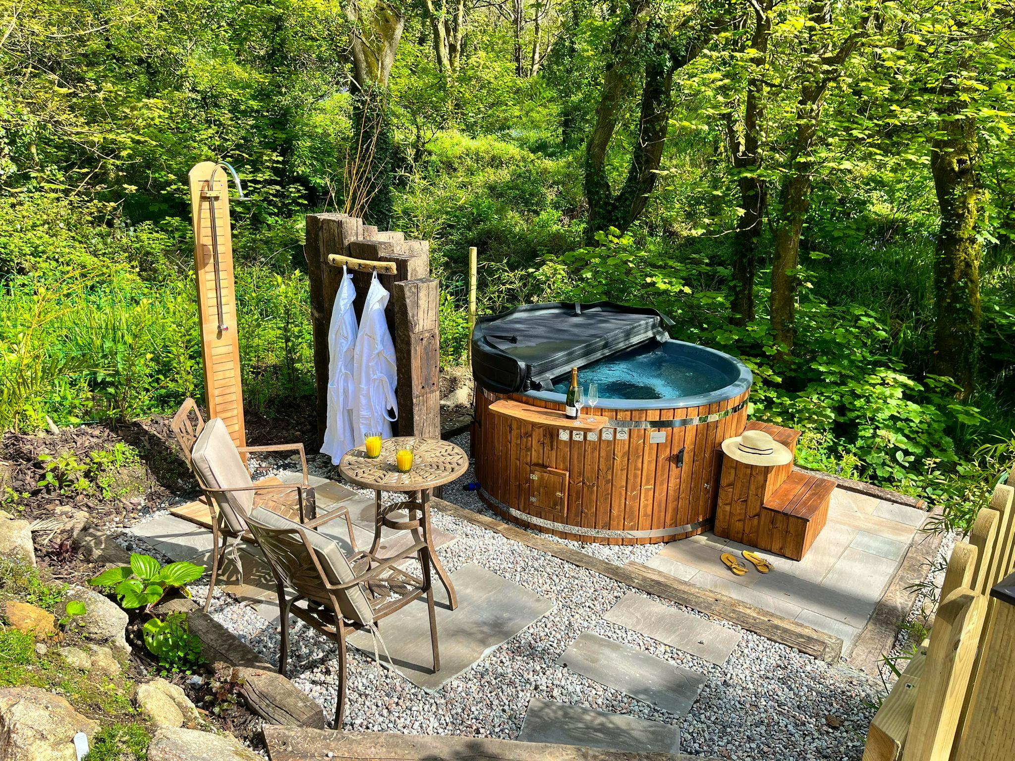Luxury garden lodge with outdoor bath and free spa access on the pretty Cornish coast.