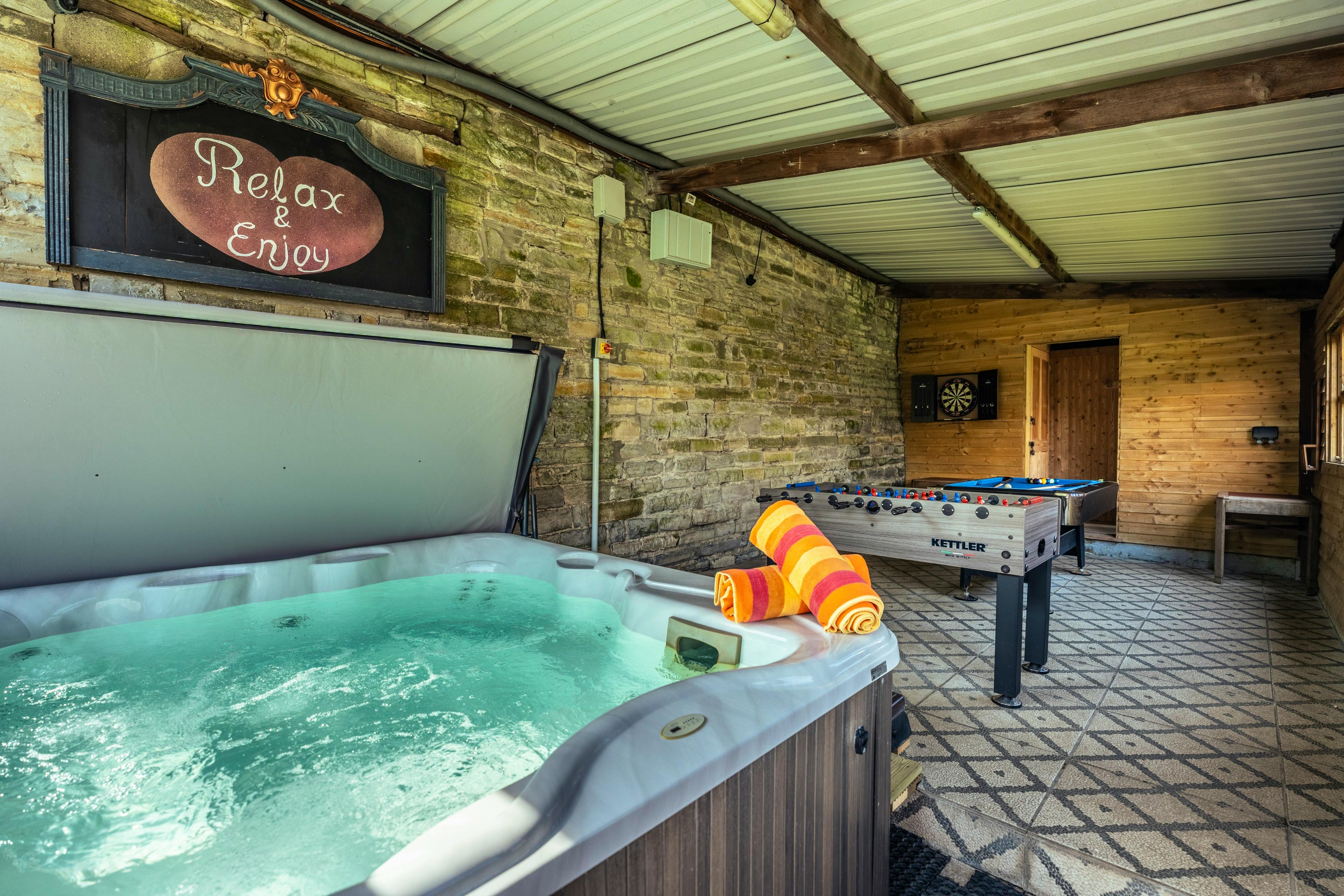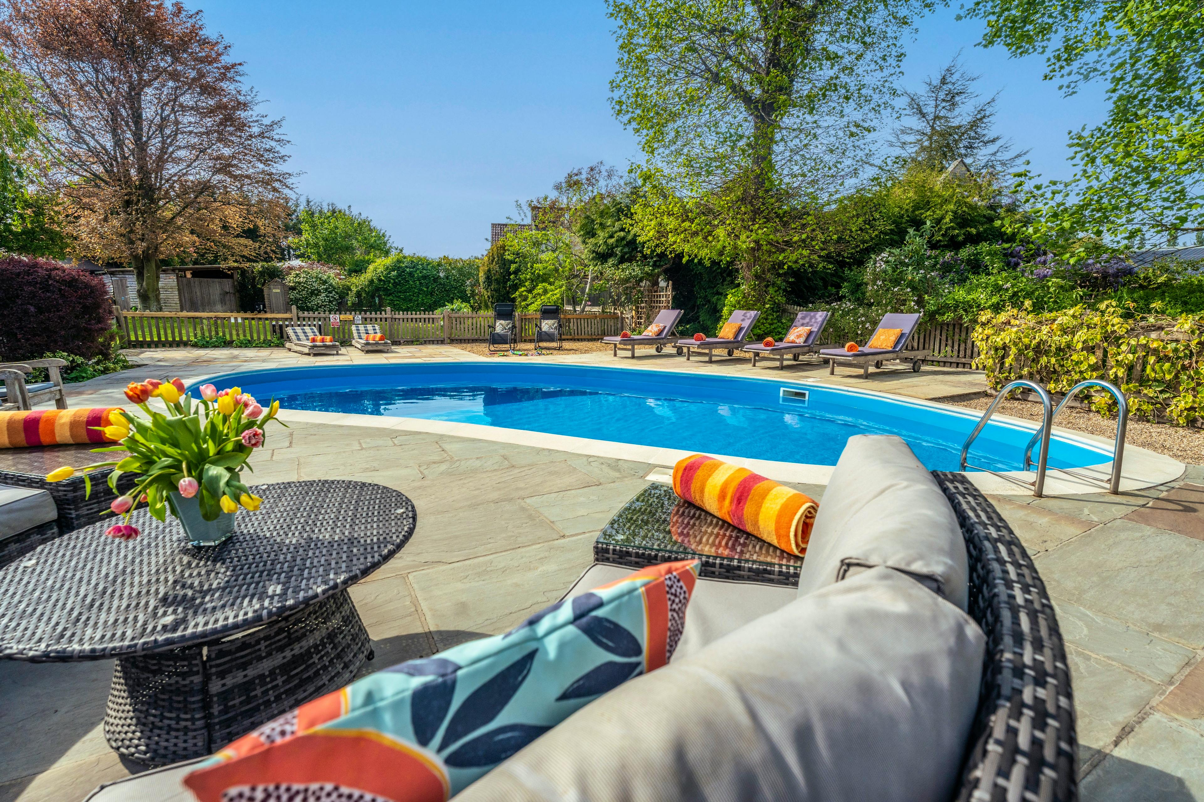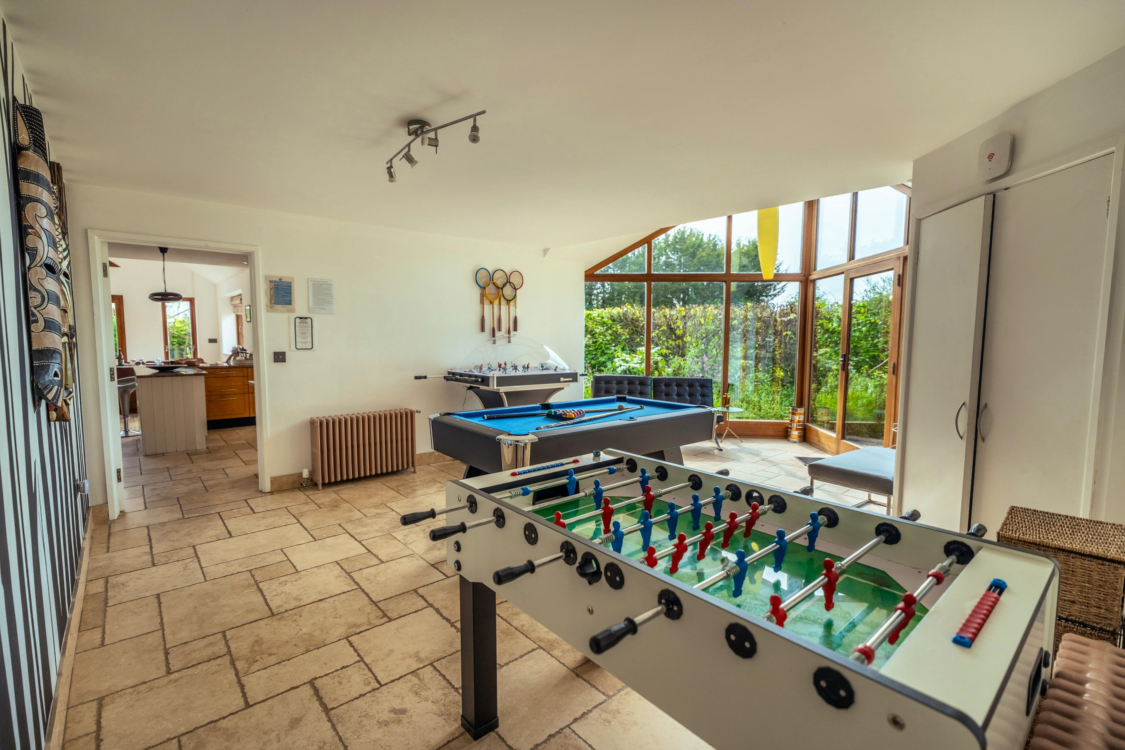 The interior has a spacious and open feel to it with living areas large enough for everyone to put their feet up together on the sofas or gather around the dining table and tuck into dinner. Huge bifold doors open out onto the patio, letting in plenty of natural light and allowing you to extend your living space even more on warmer days. If you're feeling competitive, you can get a pool or table football tournament going or enjoy a game of croquet out on the lawn. However, if it's downtime you're after, you might prefer to relax in the hot tub, sauna, steam room or by your own private heated pool. You’ll also have access to a shared pool which is slightly larger and set in a walled garden.